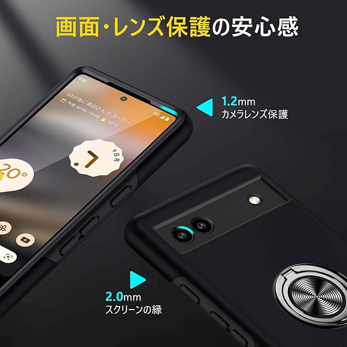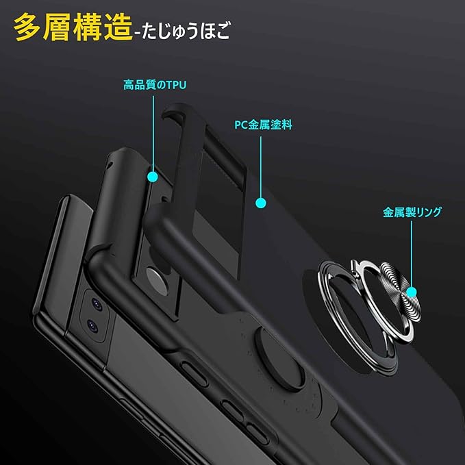 Google Pixel 9A 用ケース リング 耐衝撃 衝撃吸収 全面保護カバー TPU+PCバンパー 二重構造 米軍MIL規格 車載ホルダー対応 擦り傷防止 滑り止め 薄型 軽量 グーグル ピクセル 9a 用カバー 耐久 指紋防止 おしゃれ 人気 携帯カバー 黒 MZ86-06