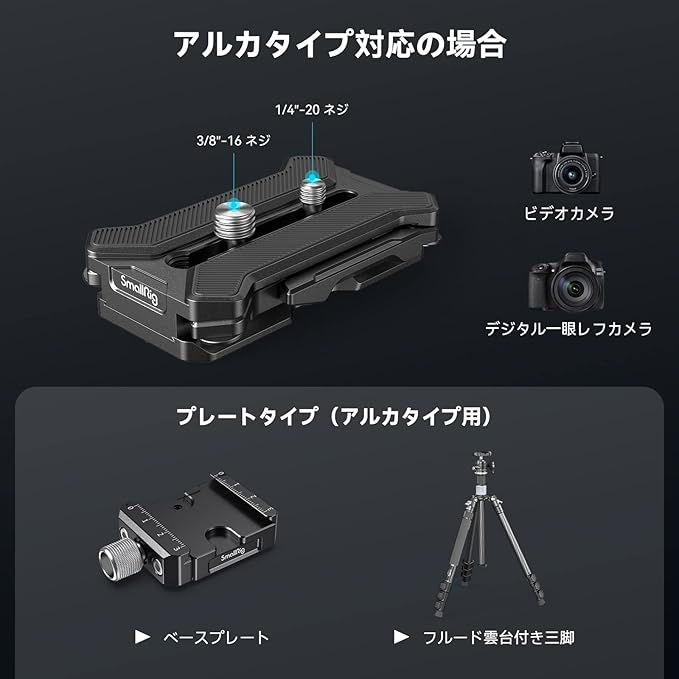 SmallRig 多機能クイックリリースプレート スタンド (アルカタイプ対応) カメラ用スタンド 望遠レンズ保護 ビデオ三脚対応 卓上 地面 ローアングル スモールリグ 3913