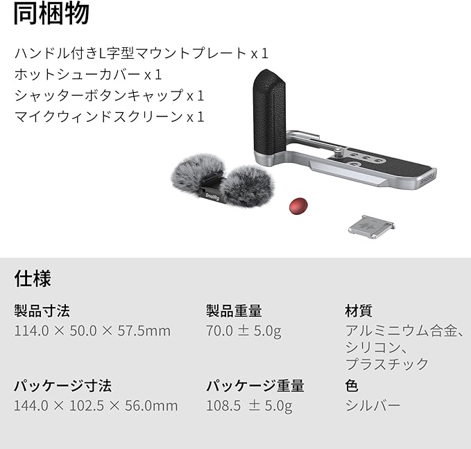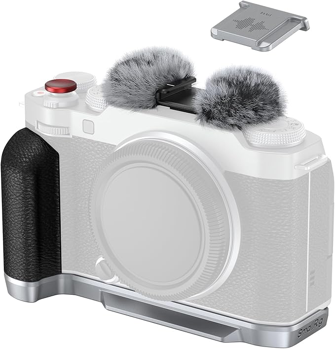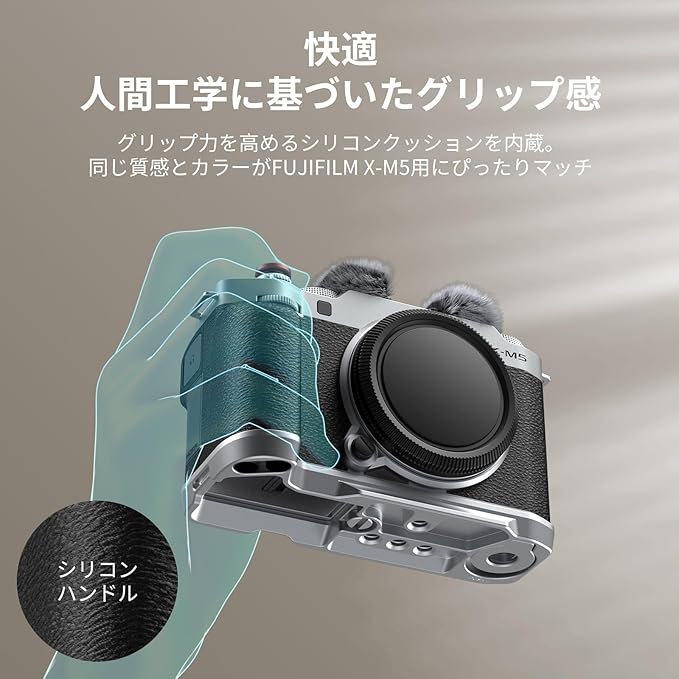 SmallRig X-M5用 L型グリップ FUJIFILM X-M5用 カメラハンドグリップ Arca用クイックリリースプレート内蔵 軽量シリコンサイドハンドル コールドシューアダプター付きウインドシールド付属 (シルバー) 4875