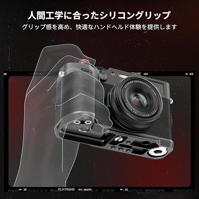 【人間工学に基づいたシリコングリップ】ハンドグリップ4556Bには、人間工学に基づいたシリコンハンドルが組み込まれており、グリップが向上し、快適な手持ち体験を提供します。また、底部にもシリコン素材が組み込まれており、カメラ本体の傷を防ぎます