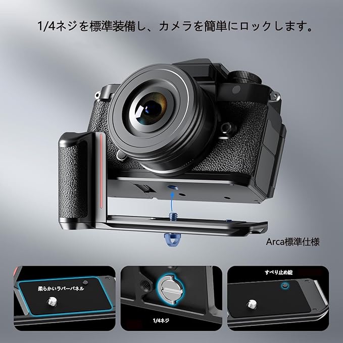 1.適用 Nikon ニコン ZF Z f 専用設計のため2.良質な航空アルミニウム合金の材質を採用し、硬度が極めて高く、鍛造技術CNC精工一体成形を経て、金属の密度をより高くし、使用寿命をより長くし、表面陽極酸化処理を行い、製品の手触りをより良くし、より耐摩耗性、耐腐食性を向上させる3.1/4""カメラ取り付け用のネジ穴1/4""三脚/一脚/ボールヘッドなど用のネジ穴を開けました。4.六角レンチが付いており、簡単にカメラを調整できます。【アフターサービス保証】あなたは製品に何か問題があったら、私に直接連絡して、6ヶ月間の保証サービスを提供することができます。ください。ARCA-SWISS標準規格,UNC1/4""-20 長*幅*高:152mm*48mm*70mm