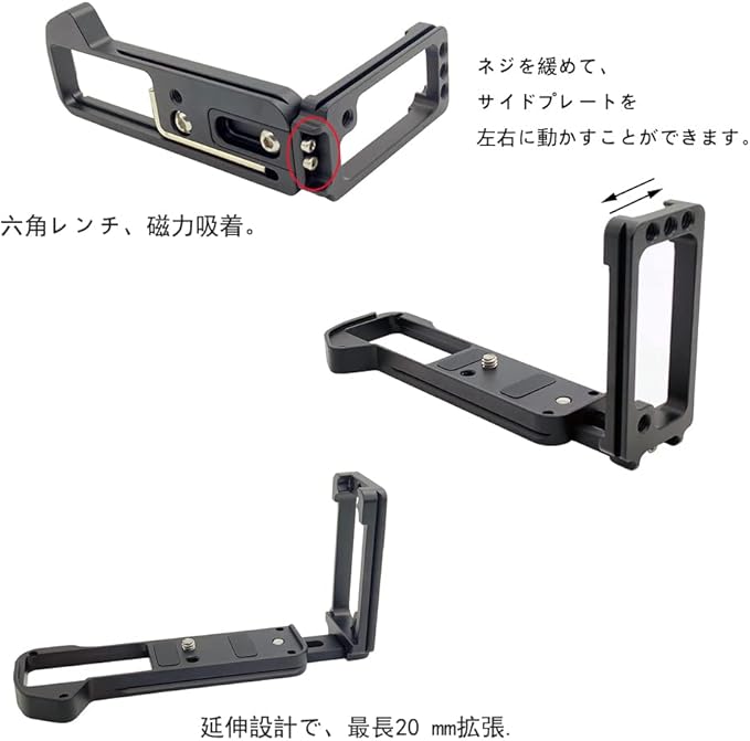 1.適用 Fujifilm Fuji 富士 X-T5 XT5 専用設計のため2.良質な航空アルミニウム合金の材質を採用し、硬度が極めて高く、鍛造技術CNC精工一体成形を経て、金属の密度をより高くし、使用寿命をより長くし、表面陽極酸化処理を行い、製品の手触りをより良くし、より耐摩耗性、耐腐食性を向上させる3.1/4""カメラ取り付け用のネジ穴1/4""三脚/一脚/ボールヘッドなど用のネジ穴を開けました。4.六角レンチが付いており、簡単にカメラを調整できます。【アフターサービス保証】あなたは製品に何か問題があったら、私に直接連絡して、6ヶ月間の保証サービスを提供することができます。ください。ARCA-SWISS標準規格,UNC1/4""-20 長*幅*高:145.5mm*52mm*86mm