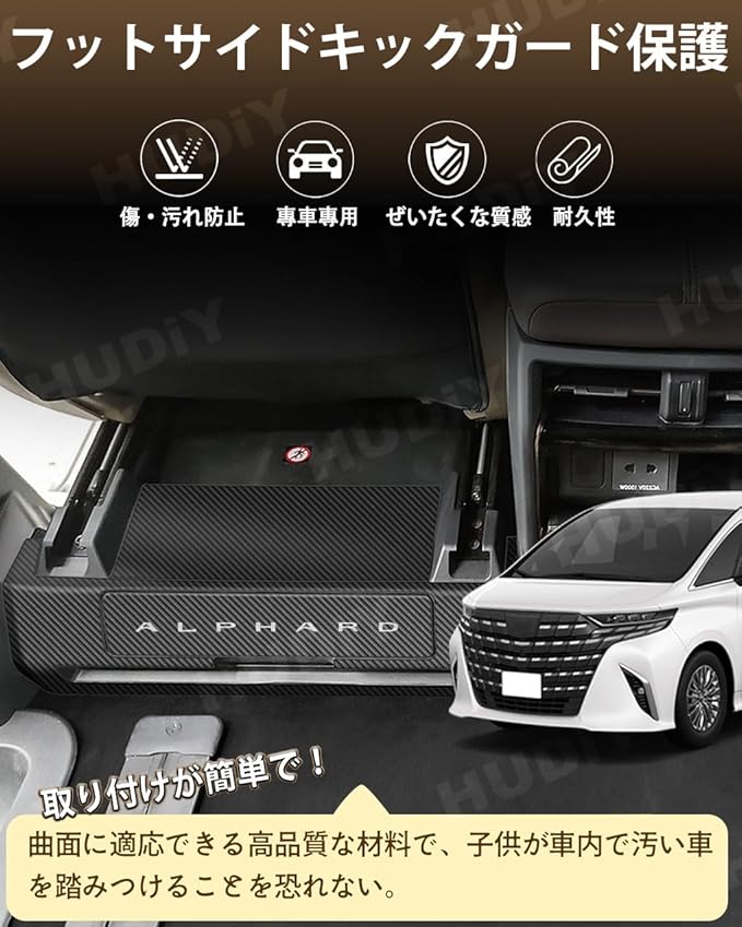 アルファード 40 系 専用 キックガード サイド キックガード AAHH40W AAHH45W (2023年6月~現行) バックキックマット 車種設計 専用ロゴ PUレザー材質 フットサイド 内装パーツ カスタム 保護パーツ 汚れ防止 キズ防止 日本語の取り付け説明書付き カーボン柄
