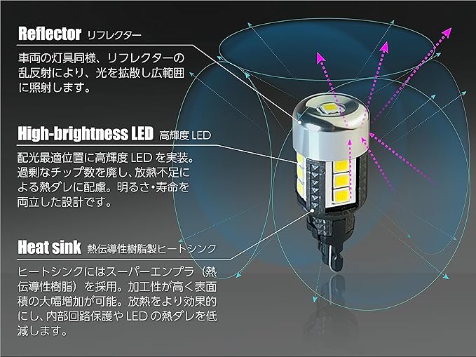 【商品説明】T16サイズの爆光130lmLED!純正球に比べてコンパクトな設計なので幅広い車種に適合します。