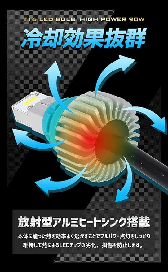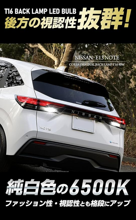 T16 90W ノート/オーラ E13 e-POWER バックランプ LED 無極性 BULB 2個1セット 6500K ヒートシング放熱 車検対応 カスタム パーツ アクセサリー ドレスアップ E13 NOTE T16 90W