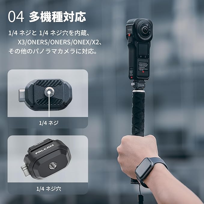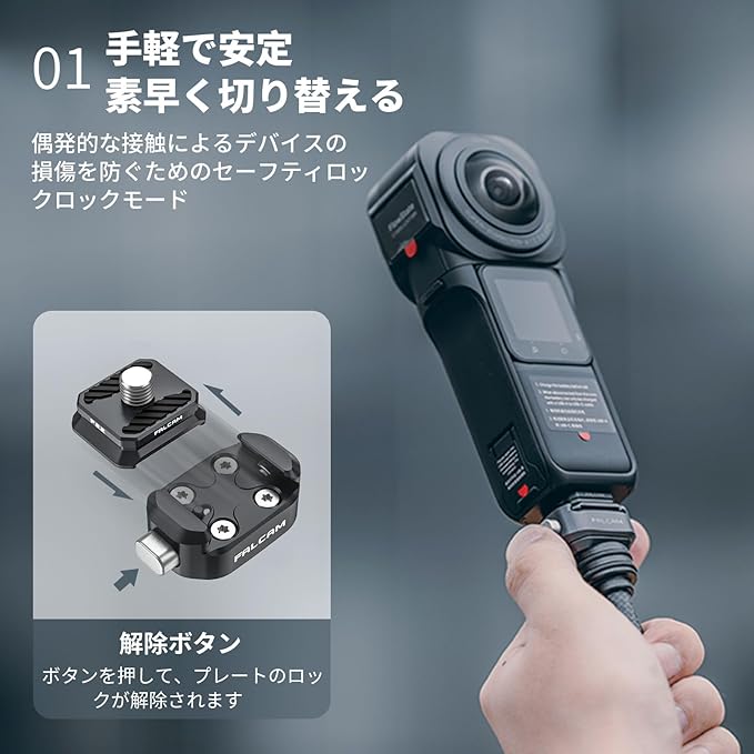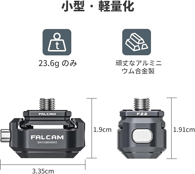【軽量・小型で持ち運びに便利】このF22クイックリリースアダプターは、f22クイックリリースシリーズの一部です。本製品は19gのみと非常に小さく軽いので、持ち運びにも便利です。 多くの機器に対応でき、クイックリリース機能により、不要な手間をかけずに簡単に機器を交換することができます。カメラ マウント アダプター もスマホ マウント アダプター 。*過酷な環境での使用はお勧めしません、例えばオートバイなど。