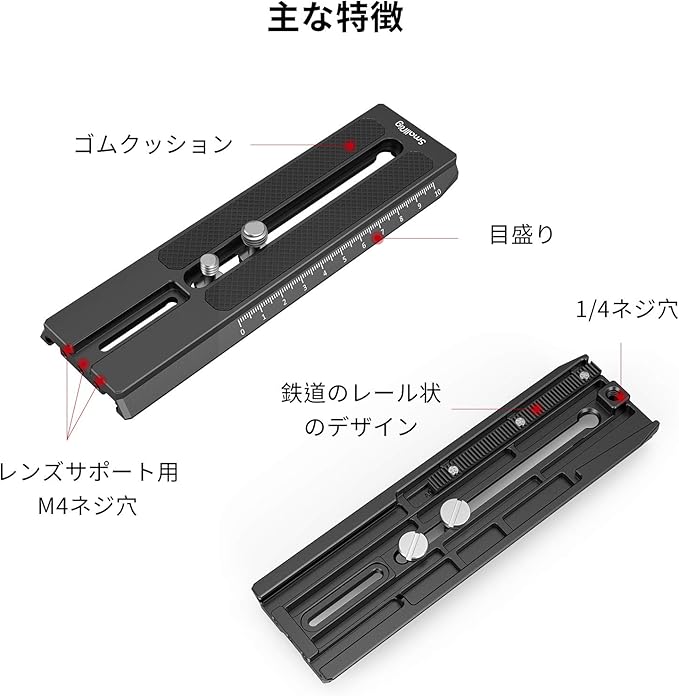 【対応性】クイックリリースプレートはオリジナルのプレートより40 MM長いです。そして、カウンターウェイトやカウンターウェイトクランプキット、レンズサポート、フォーカスモーター用マウントなどに対応し、撮影の可能性が広がります。