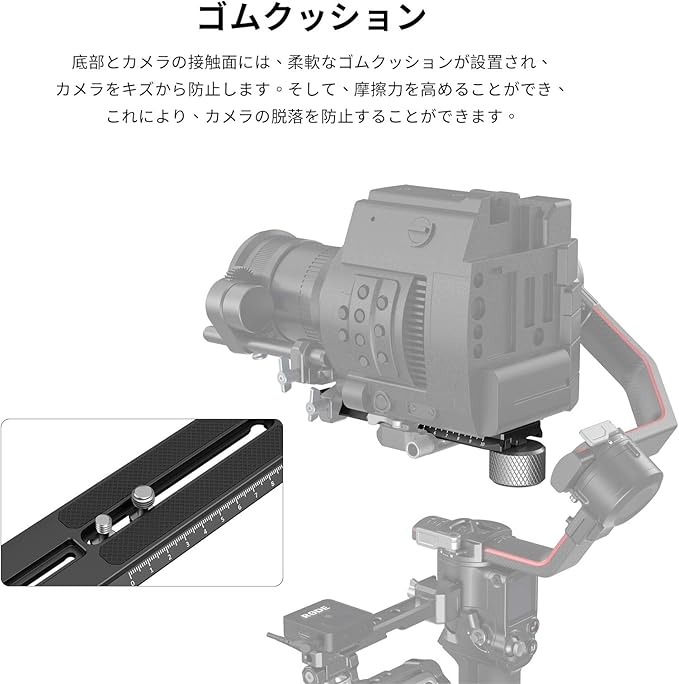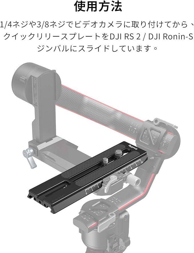 【デザイン目的】クイックリリースプレートは、 RS 3 / RS 3 Pro / RS 2 / Ronin-S用ジンバルにビデオカメラを装着する際の安定性と安全性を高めるために設計されています。