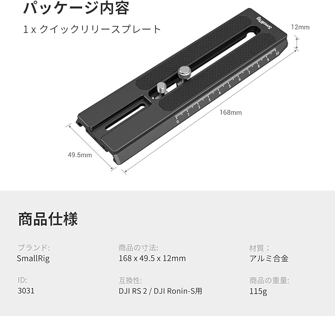 SmallRig RS 3/ RS 3 Pro/RS 2/ Ronin-S用クイックリリースプレート- 3031B