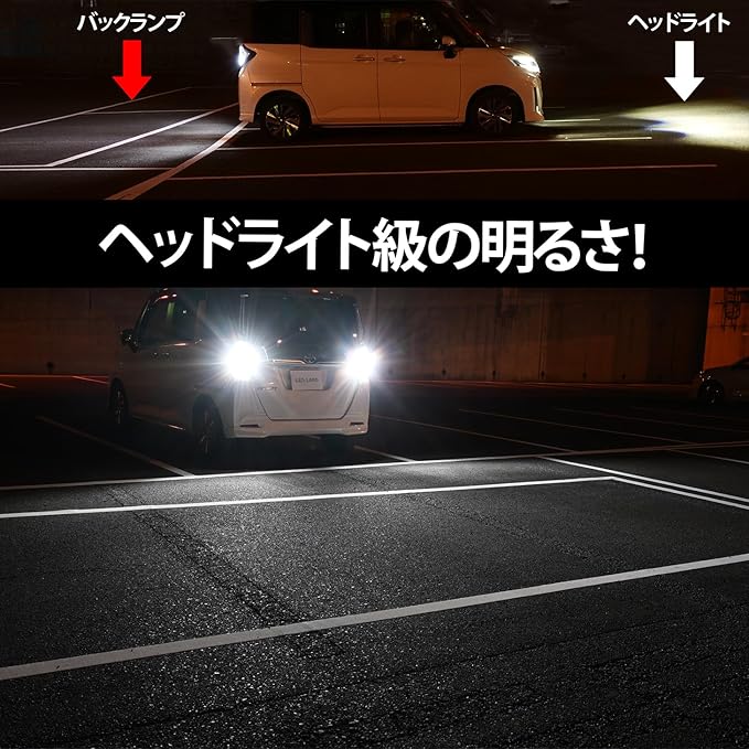 【爆光5100lm】T16 LEDバックランプ 瞬間点灯で安全性アップ 超高輝度5100lm: 自社測定による驚異の明るさ 独自チップ配置: 正面6チップ + 側面5チップ 6で360度照射 瞬間点灯: スイッチONで即座に最大光量を実現 視認性向上: 周囲からの認識が格段に向上し、事故防止に貢献