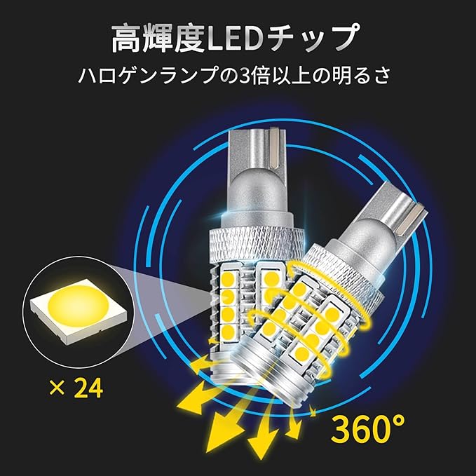 リフレクターの反射を考慮したLED配置で、拡散性に優れ光量の高いLEDチップを使用しているため、360度死角のない照明を実現します。