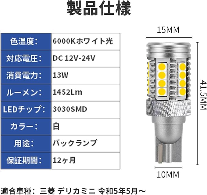 KONPON デリカミニ対応 テールライト LED T16 1451LM 2個セット バックライト DELICA MINI 車検対応 6500K カスタム/交換パーツ アクセサリー ドレスアップ ミツビシ