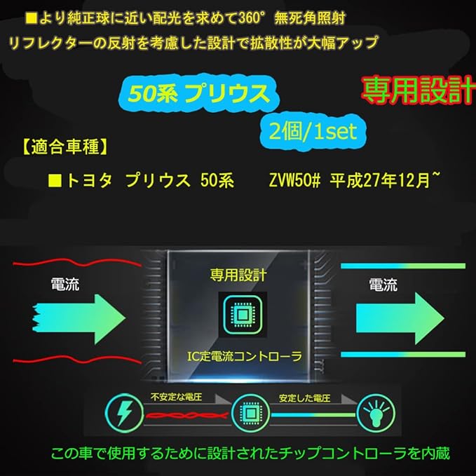 【専用設計】プリウス 50系 専用設計。専用設計ならではのフィット感,CANBUSキャンセラー内蔵,別途抵抗不要!ポン付けで良いので面倒な配線処理も必要ありません。