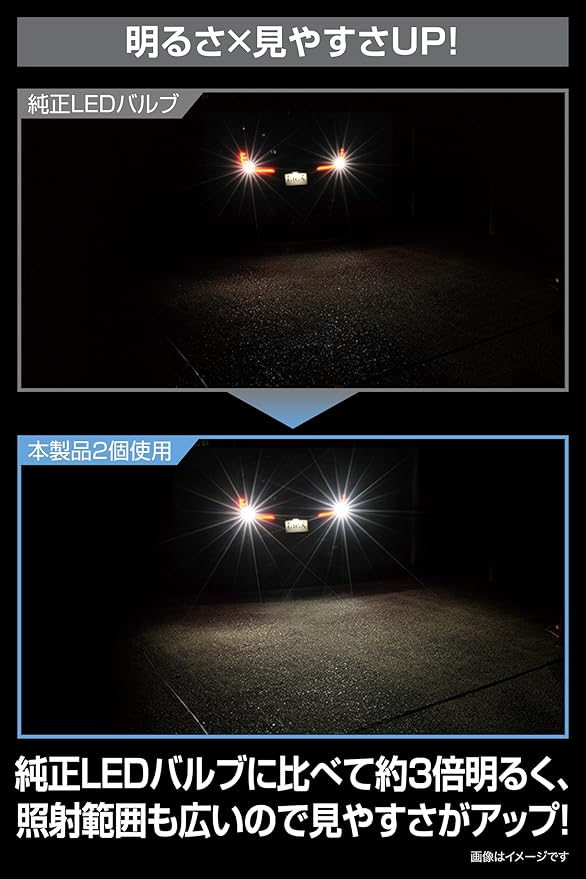 本製品は純正比約300%(1400lm※)の明るさを実現!バックランプとして十分な明るさを誇り、純正LEDバックランプの不満を解消します。