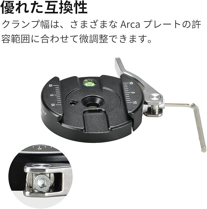 クランプの幅は調整可能で、底部には雅佳ボールヘッド用の標準インターフェースがあり、さまざまな三脚ヘッドで使用でき、互換性が優れています。