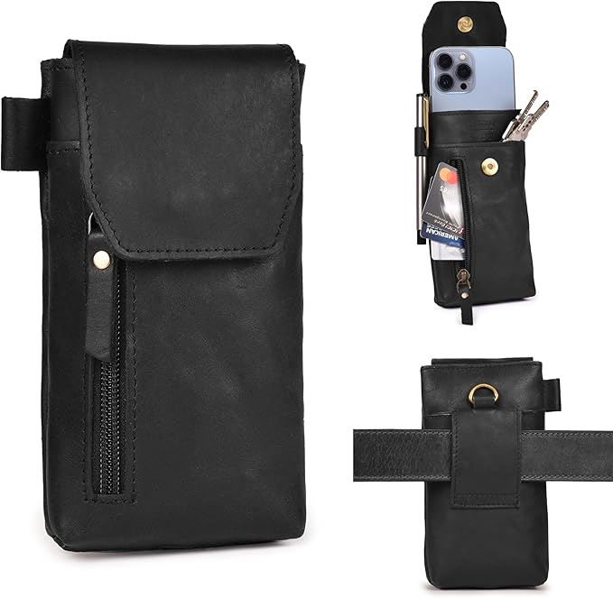滑り止め/スキッドフリーの携帯電話ホルスター: 耐久性のあるフルグレインバッファローレザーから手作りされ、熟練したステッチと強力なマグネット留め具により、永続的な品質とスタイルを実現します。