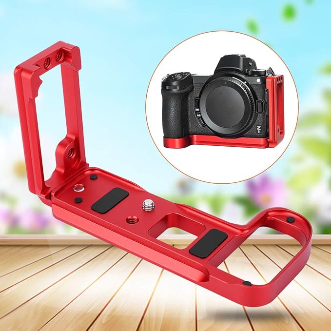 L字型縦位置ブラケット 伸縮性 L型ハンドル クイックリリースプレート Lブラケット三脚クイックリリースプレート 1/4インチねじ付き ニコンZ7 Z6用(赤)