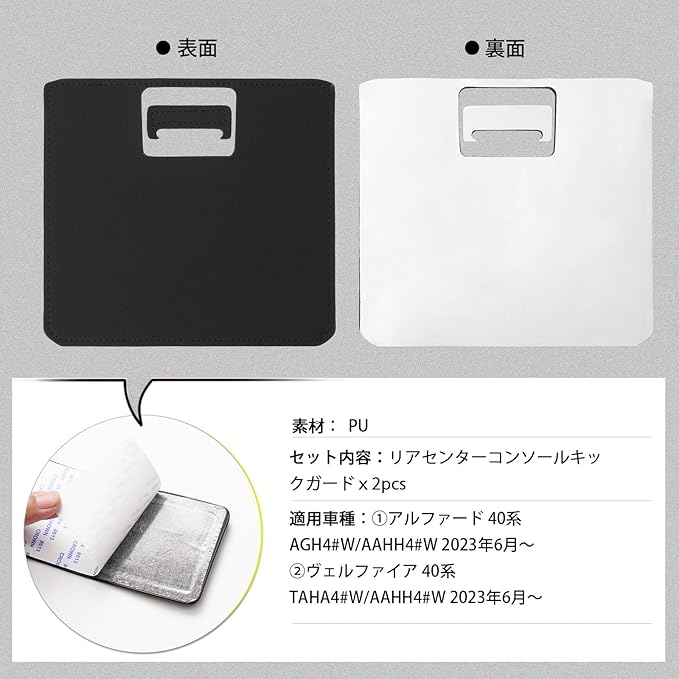 GIMUYA トヨタ 新型 アルファード 40系 ヴェルファイア キックガード リアセンターコンソールボックス用 フットサイド 保護マット ALPHARD VELLFIRE 専用 キズ 汚れ防止 内装 カスタムパーツ アクセサリー シールタイプ PUレザー製 ブラック タイプ2 2PCSセッ