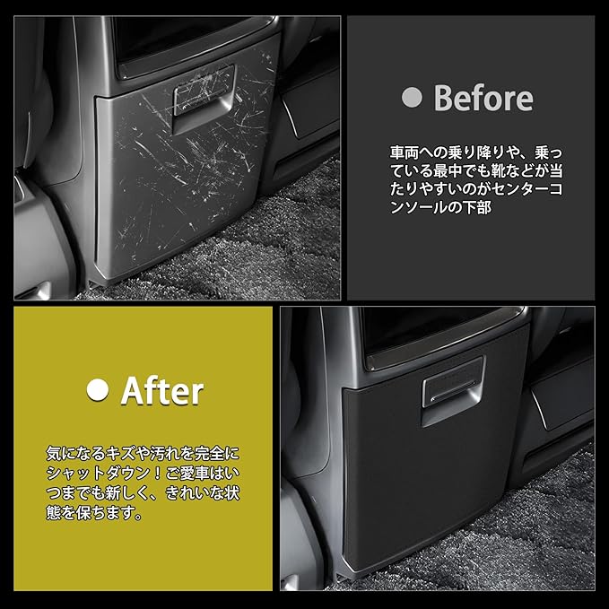 1.【適合車種】①トヨタ アルファード ALPHARD 40系;型式:AGH4#W/AAHH4#W;年式:2023年6月~現行;②ヴェルファイア VELLFIRE 40系;型式:TAHA4#W/AAHH4#W;年式:2023年6月~現行;※ご注意:グレードによってコンソールボックスの形状は2種類ございます、必ず現車をご確認いただいたうえ、お買い求めください。【形状:タイプ②】;セット内容:キックガード リアセンターコンソールボックス用 2PCS。カラー:ブラック。