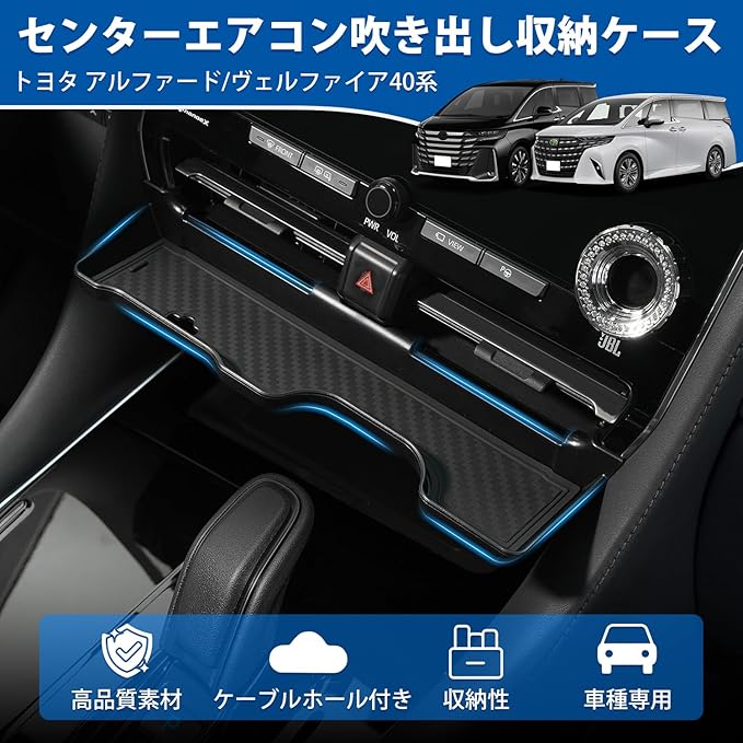 Mozan トヨタ 新型 アルファード40系 ヴェルファイア40系に適合 センターエアコン吹き出し収納ケース 収納ボックス センターコンソールトレイ コンソールボックス コンソールトレイ 小物入れ 小物収納 スマホ置き ケーブルホール 滑り止めマット インテリア アクセサリー 取付簡単