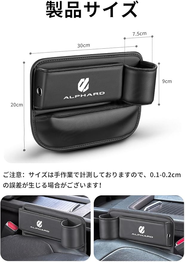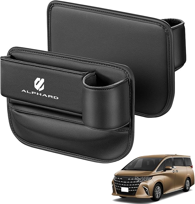 SUVVNE(スヴニ) 車隙間 収納 新型アルファード 40系用 ドリンクホルダー レザー ALPHARD 40系 AAHH40W AAHH45W(2023年6月~現行) 車種専用 収納ケース 収納ボックス 収納ソフト シートポケット 車パーツ 専属ロゴ ブラック(運転席 助手席 2個)