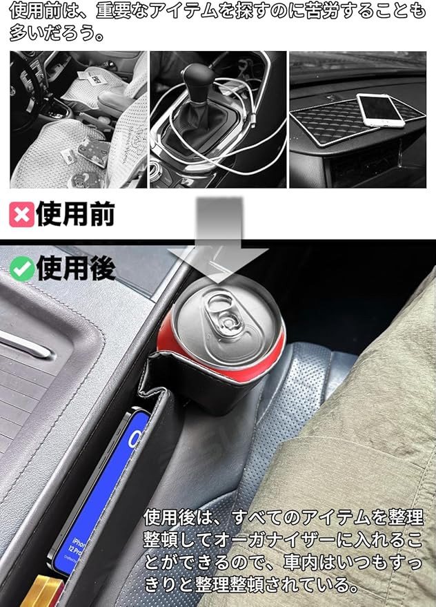 [大容量ストレージ]:合理的な室内空間設計は、さまざまな雑貨を収納でき、車内をすっきりと整頓できる。ティッシュ、小さなスナック、グラス、鍵など、様々な雑貨を簡単に収納でき、車内での不規則な散乱を避けることができる。 縁が高くなっているので、運転中の落下を効果的に防ぎます。 また、内部は柔らかいパッド素材でできており、収納物を傷から守り、走行中の騒音を軽減します。