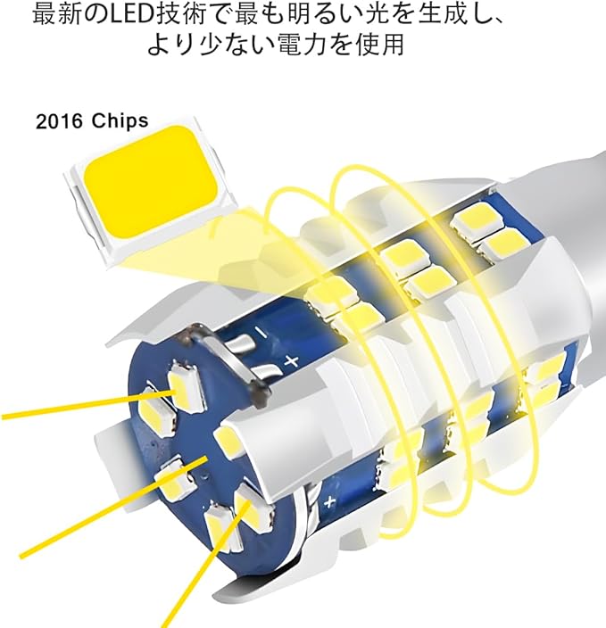 互換/交換可能なバルブ形状T16 LED バックランプ T16 2個 セット 発光色ホワイト6000K