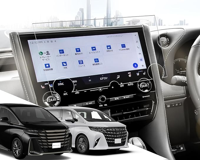 製品:14インチカーナビ強化ガラスフィルム(1枚入り)。対応年式:2023/6/1以降の現行モデル。対応車種:トヨタ アルファード / アルファード ハイブリッド 40系、トヨタ ヴェルファイア / ヴェルファイア ハイブリッド 40系(以下のグレードに適用可能:AAHH40W、AAHH45W、AGH40W、AGH45W、TAHA45W、TAHA40W)。