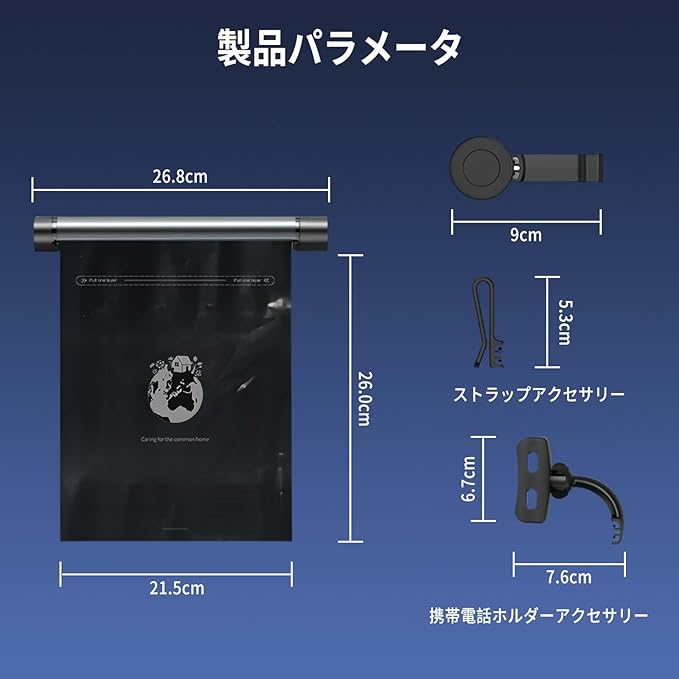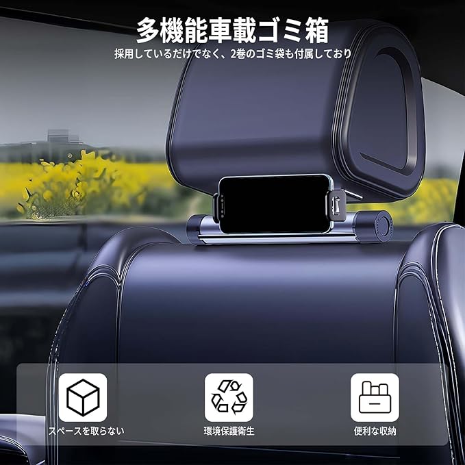 【省スペース】回転収納設計かつコンパクトなサイズで、使用しないときはゴミ袋を収納でき、車内空間を占めず、より美しく、内部空間を最大化利用できる。清潔感のある乗用車やトラック、SUV、レンタカーとキャンピングカー。
