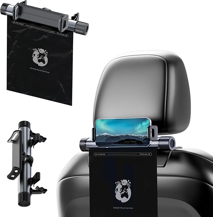 【取付け簡単】この車用ゴミ箱には2つの取り付け方法があります。1. ヘッドレストの背面に取り付けます。ローラーホルダーはスライドロッド式で、長さを0~18cmに調整できます。ヘッドレストのクリップの直径は約10~15mmです。2. シートの背面に直接掛けることもできます。(クリップ2種類付属)