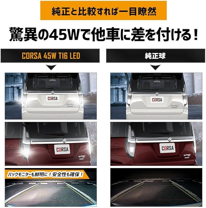 CORSA ソリオ ソリオバンディット 適合 LED バックランプ T16 45W 2個1セット バックライト 無極性 6500K SOLIO BANDIT カスタム パーツ アクセサリー ドレスアップ [2] M