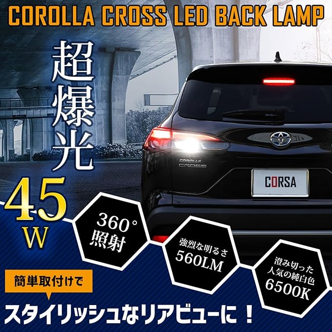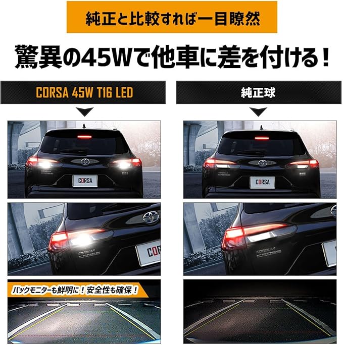 CORSA カローラクロス 適合 LED バックランプ T16 45W 2個1セット バックライト 無極性 6500K COROLLA CROSS カスタム パーツ アクセサリー ドレスアップ カローラ [2] M