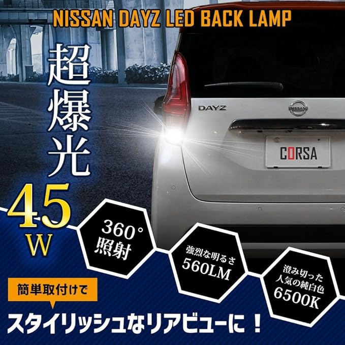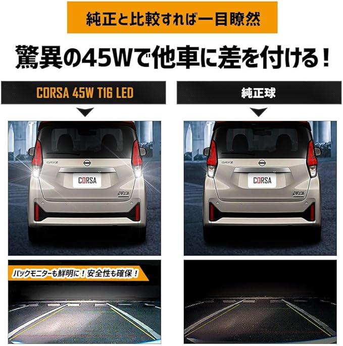 CORSA デイズ マイナーチェンジ後 適合 LED バックランプ T16 45W 2個1セット バックライト 無極性 6500K DAYZ カスタム パーツ アクセサリー ドレスアップ [2] M