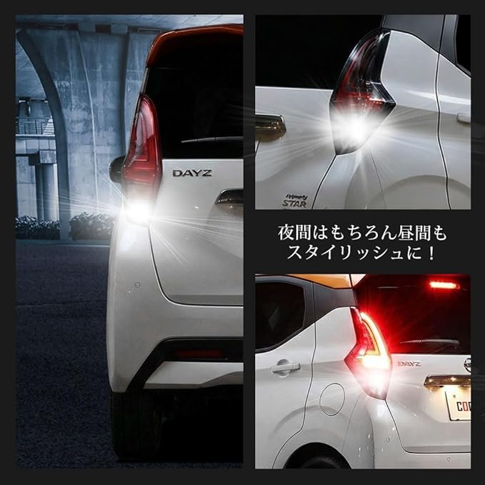 ✅ 6500K 純白ホワイトカラー:澄んだホワイト発光で視認性とスタイリッシュさを両立。夜間はもちろん、日中でもリアビューをシャープに演出します。