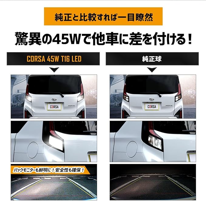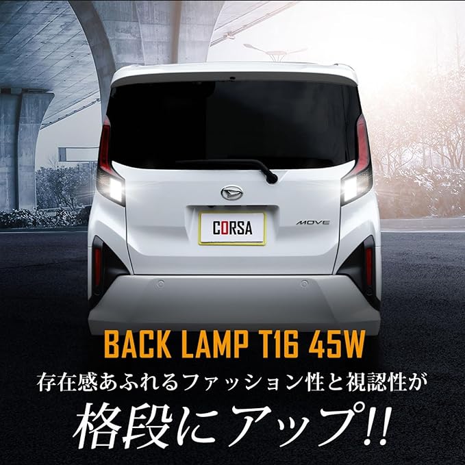 CORSA ムーヴ 適合 LED バックランプ T16 45W 2個1セット バックライト 無極性 6500K MOVE ムーブ カスタム パーツ アクセサリー ドレスアップ [2] M
