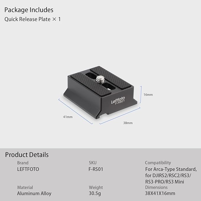 LEFTFOTO カメラクイックリリースプレート DJI RS2/RSC2/RS3/RS3-PRO/RS3ミニシンバルスタビライザーアクセサリー用