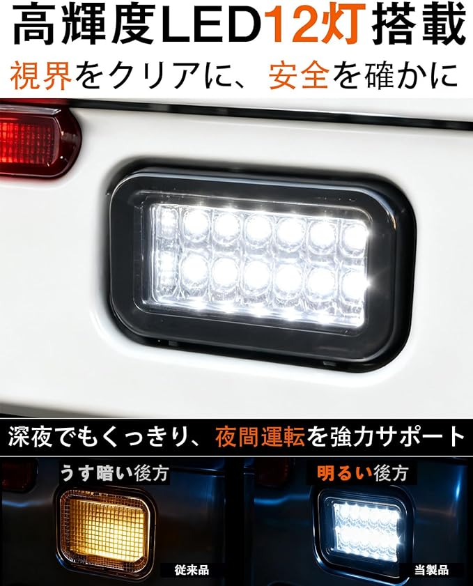 【高輝度12灯で視界を明るく照らす】 高品質な12個のLEDチップを採用し、均一でムラのない広範囲を照らします。従来のバルブよりもはるかに明るく、夜間や悪天候時のバック時の安全性を大幅にアップ。視認性が高まり、安心してバックが行えます。
