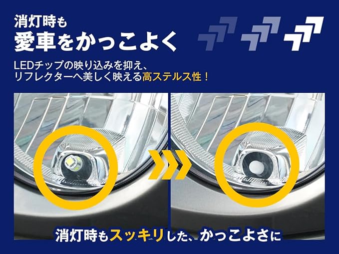 【360度照射と美しいステルス性】 高性能な拡散ドーム型ヘッドを搭載し、LED特有の直線的な光を全方向へ均一に拡散させます。リフレクター内をムラなく効率的に照らすため、視認性が大幅に向上。さらに、消灯時にLEDチップが目立たないステルス設計を採用したことで、クリアレンズ内でもバルブが浮き上がることなく、スマートで洗練された外観を維持します。点灯時の鮮やかな輝きと、消灯時の美しさを両立させたこだわりのプロダクトです。