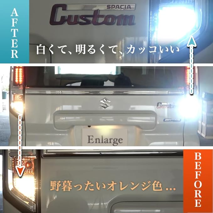 バック時の後方への注意喚起のアピールUPはもちろん、白く強い光源はお尻のスタイリッシュさもUP! 純正バルブを外して製品のLEDバルブを差し込むだけのポン付け!