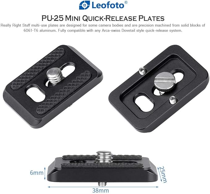 Leofoto PU-25 は、アルカスイス互換のクイックリリースプレートです。