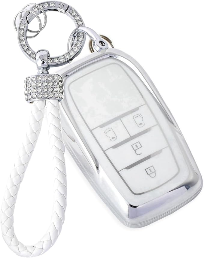 [ZANEKO] ヴォクシー ノア 90系キーケース適合トヨタシエンタ キーカバー軽量 (4ボタン、シルバーホワイト)