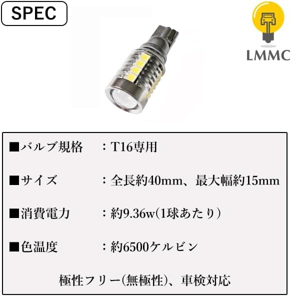 LMMC T16 LED バックランプ ホワイト ledt16 車検対応 (2400ルーメン)
