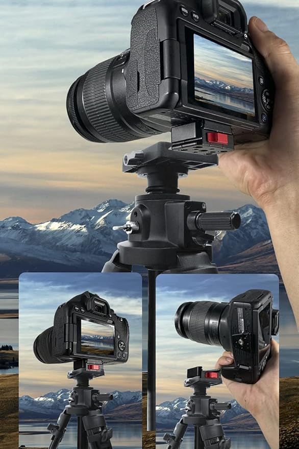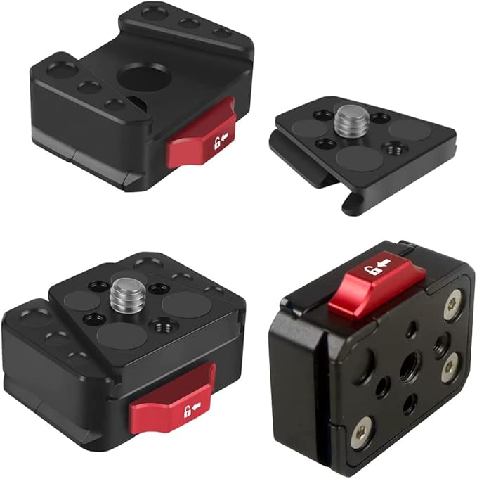 ※使用上のご注意:プレートにカメラ等をつけず(プレートに1/4ネジだけのまま)ベースに取り付けるとロックを解除してもプレートが外れなくなることがあります。この場合はプレートについている1/4ネジを反時計回りに何回か回して緩め、その1/4ネジを持ち上げながらロックを解除してプレートを撮りずしてください(原因:プレートのネジが緩んでいるとプレートのネジ頭がブレード側の穴に入って引っかかりプレートが動かなくなるため)