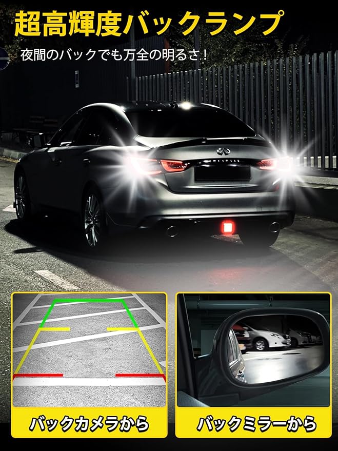【高輝度バックランプ】定電流回路を内蔵した、安定した照明システムです。型番:T16/T15 LEDバルブ。色温度:6500Kホワイト / LEDチップ:4014LED素子32個+3030LED素子4個(先端)/ 材質:航空専用アルミ / 発光角度:360 / 電圧:DC12V /使用寿命:≥50000時間 / セット:2個セット
