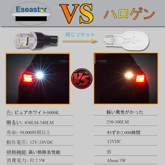 【標準T16ソケット】:T16、T15、W16W、912、921、906、904、902などに適しています。バックランプ直接交換品です。極性フリーで、取付は簡単。