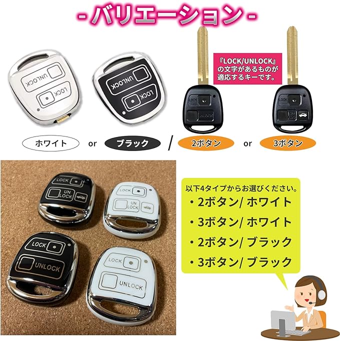 鮮やかなブラック・ホワイト2色のキーカバーには洗練されたシルバーラインが入り、高級感を際立たせます。お手持ちのトヨタキー、ダイハツキーのドレスアップや経年劣化によって生じたキーの汚れや傷・色褪せ対策等にいかがでしょうか?