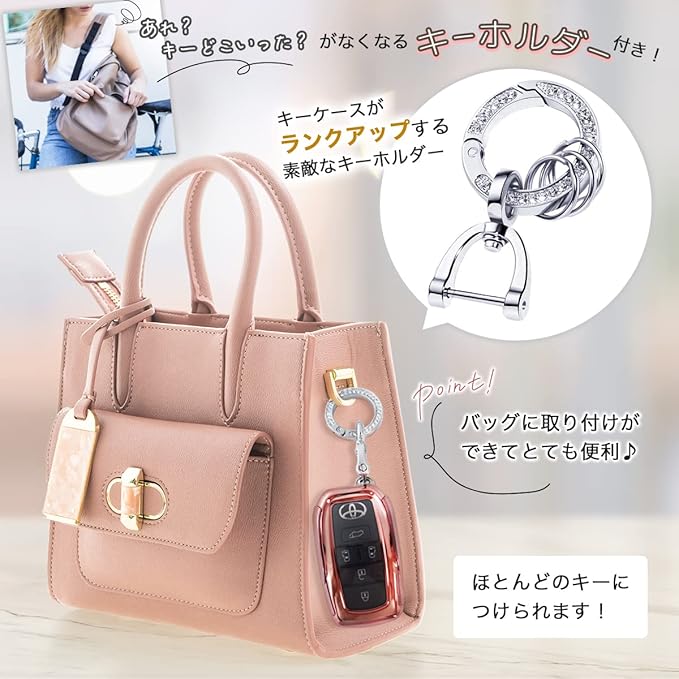 大切な愛車。女性にも楽しみを!車のスマートキーケースは男性が好むデザインが非常に多い。 MKMCではおしゃれな女性に楽しんでいただきたいと、レディース目線のキーケースを用意しました。 女性に人気のキラキラ輝くキーホルダーは車を使うたび素敵な気分になりおすすめです。 キーホルダーにはサブリングを付属。家の鍵 自転車の鍵 バイクの鍵 仕事で使用する鍵などを様々な取り付けることが可能。