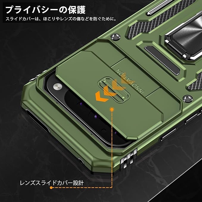Google Pixel 9 Pro XL 用ケース リング付き 耐衝撃 レンズ保護 TPU+PC 二重構造 バンパー 車載ホルダー対応 360 回転 スタンド機能 スマホケース グーグル ピクセル 9 pro xl 用ケース 一体型 携帯カバー 緑 J12-27
