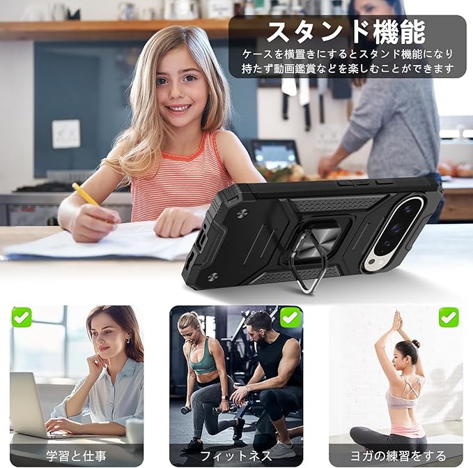 【Tgaoleyd】Google Pixel 9 Pro 用ケース/Google Pixel 9 用ケース リング付き 耐衝撃 薄型 PC対応 衝撃吸収 tpu フルプロテクトデザイン 指紋防止 グーグル ピクセル 9/9 pro 用ケース 軽量 レンズ保護 車載ホルダー対応 シリコン バンパー 米軍MIL規格 擦り傷防止 人気 携帯カバー 黒 D80-20