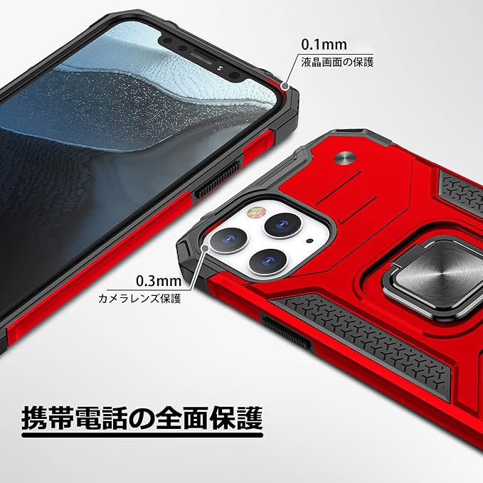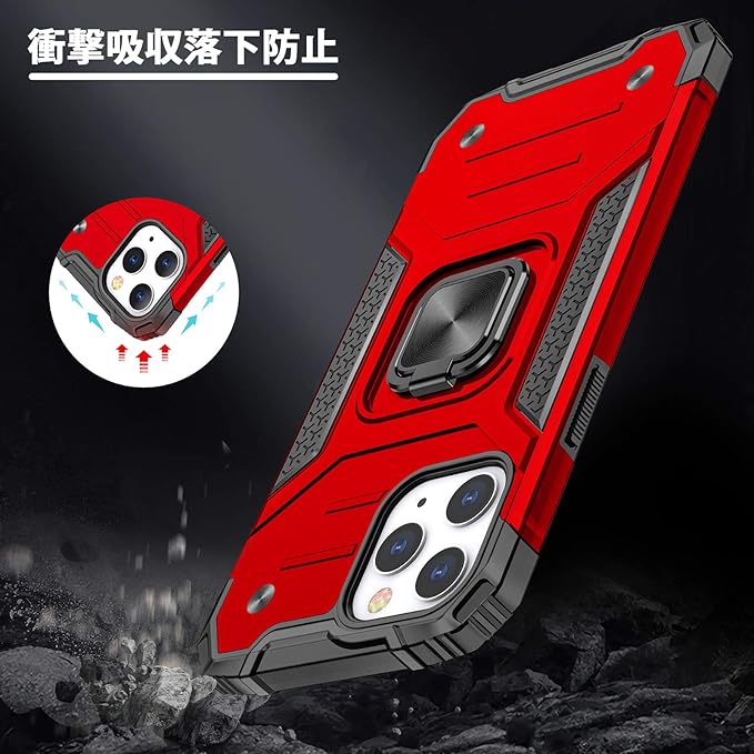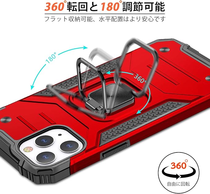 【リング付き・スタンド機能】後ろで嵌め込み式リング付き、伝統的なリングと比較して、アイフォーンの水平安定性を維持することができます。ケースを横向きにするとスタンド機能になり、360度回転と120度調節可能です。マグネット対応金属板採用し、車載ホルダーに強く吸着することもできます。